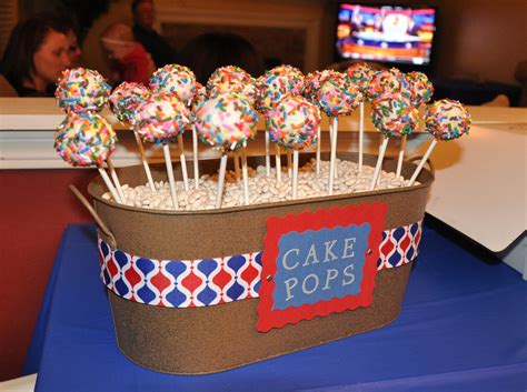 Abigail went all out with her cake pop display for the 4th of July! She used 3 galvanized pots from IKEA filled with foam and covered in rice.