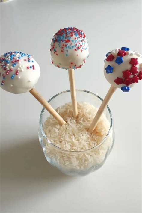 These cake pops make great recipes for various summer parties, including Memorial Day, July 4th, and even just casual family gatherings. They can be displayed in small mason jars filled with red, white, and blue candies or beads for a fun and festive table centerpiece.