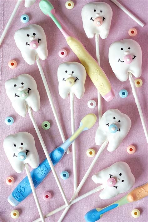 It’s always been somewhat of a joke that I am a dentist fighting kids’ cavities by day and a baker serving up sugary treats at night. But the fact of the matter is, childhood caries (the disease that causes cavities) is really no laughing matter. February is National Children’s Dental Health Month, and I figured it was about time I confronted the irony of my blog, and talk a little more seriously about tooth decay. Childhood caries is the most common chronic disease in children, affecting half of our country’s kindergartners, and is four times as prevalent than childhood asthma. At my residency program I work with a low income population of kids that has a lot of cavities that cause pain, missed school, and even hospitalizations. It’s heartbreaking, but working in this profession, and especially with kids, there’s a lot of hope for improving habits and getting kids into healthier habits for their future. I love what I do, and I really, really love baby teeth, so it was only a matter of time before I made baby tooth cake pops anyway, right??